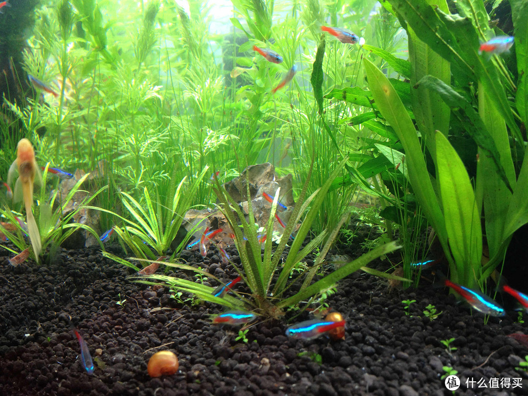 10)最重要的就是鱼缸里的主角——鱼、虾,我挑选的是容易饲养、性情温和的灯科鱼、樱花虾、苹果螺各若干,可以和谐共生。购于十里河实体店;